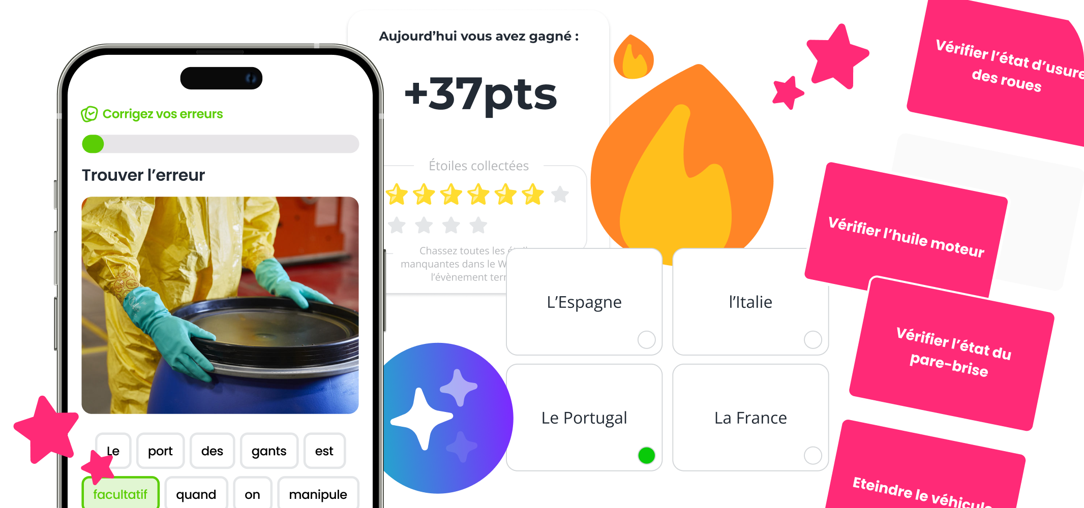 Notre expérience d'apprentissage sur mobile s'adapte à tous les usages. Que cela soit pour vos objectifs de formation, prévention et conduite du changement, SPARTED est la solution qu'il vous faut.